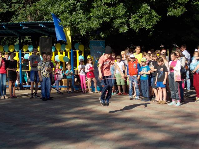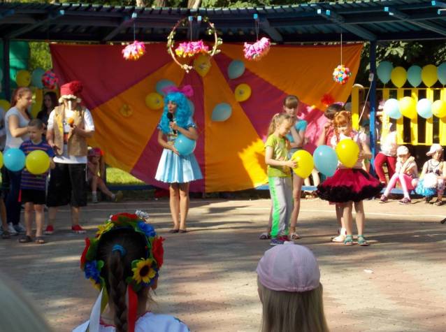 В 16 часов началась развлекательная программа. Сначала поприветствовали юных гостей с Майорская, приехавших на праздник по приглашению ГО "Твоє нове місто" (был организован специальный автобус для перевозки). Мальвина и Буратино устроили множество интересных и веселых конкурсов с призами. На каждый из них - настоящий «лес рук», всем хотелось поучаствовать. Раздавались звонкие песни, а зажигательные танцы заставляли зрителей пританцовывать на месте.