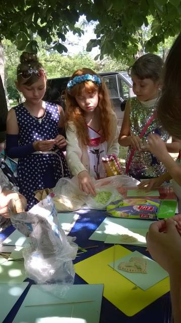Сначала все желающие учились создавать открытки из соленого теста и две разновидности кукол-мотанок. Местные мастерицы охотно показывали, рассказывали и помогали любознательным и старательным деткам с поделками. Желающих было столько, что пришлось срочно восстанавливать запасы расходных материалов и деталей. Вместо запланированной одного часа мастерская проработала почти два.