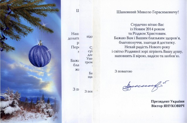 Авторский коллаж из поздравительных открыток за подписью Президента Украины В. Януковича.