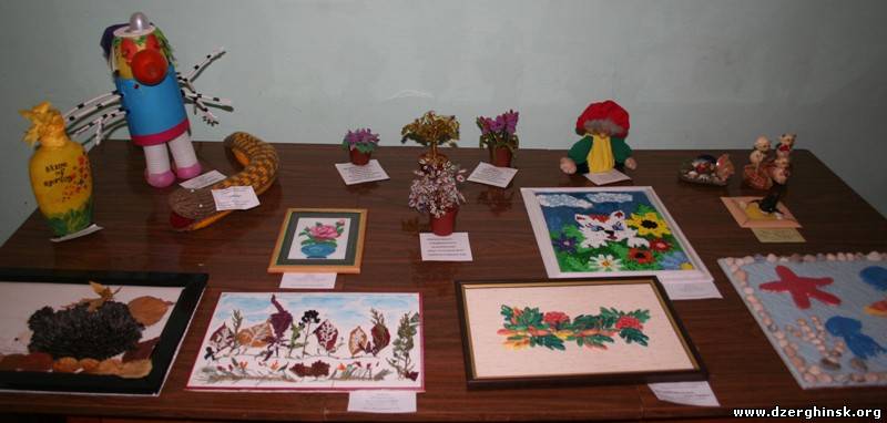 Работы, сделанные руками ребят в различных видах декоративно-прикладного искусства: оригами, художественная вышивка, бисероплетение, вязание, флористика, тестопластика, изделия из природного материала, были представлены на выставке.